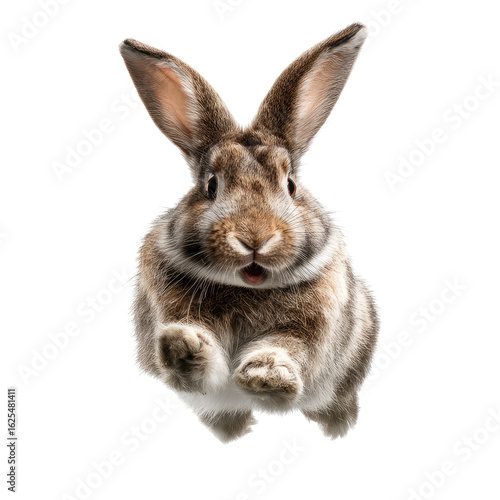 © fartner, Obraz premium A fluffy rabbit in mid-leap, looking surprised