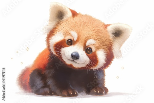© Fridocha, Naklejka premium A fluffy red panda looks curiously at the camera with its sweet smile