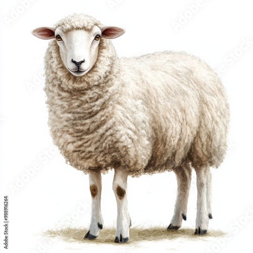 © GenBy, Fototapeta premium A fluffy sheep standing gracefully, white isolate background.