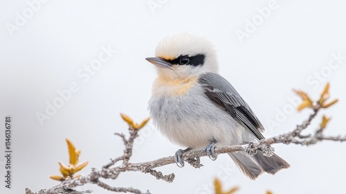 © kinara art design, Obraz premium A fluffy white and grey bird perched on a branch.