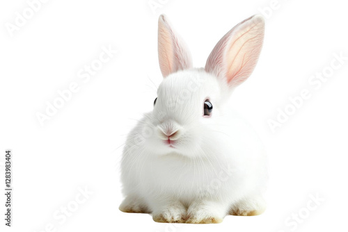© Irfan Mulyana, Fototapeta premium A Fluffy White Bunny Sits on a Black Background, Transparent Object