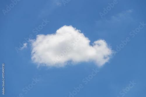© pjjaruwan, Fototapeta premium A fluffy white cloud against a blue sky.