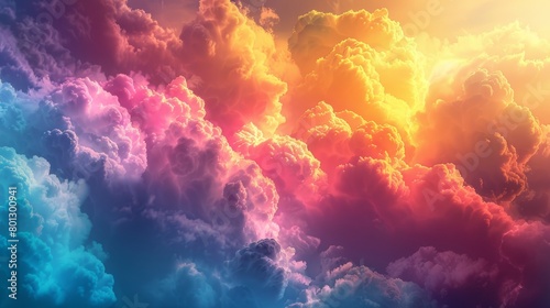 © fourtakig, Fototapeta premium A fluffy white cloud drifts across a bright blue muti colord sky
