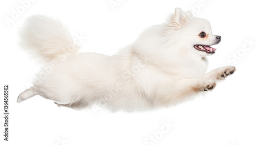Obraz premium a fluffy white dog leaps joyfully in mid-air showcasing its play
