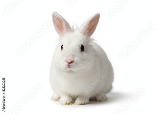 © Syafiq Rahman, Obraz premium A fluffy white rabbit sits facing forward against a white background.