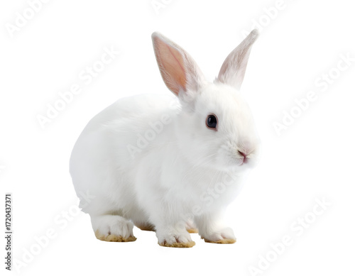 Obraz premium A fluffy white rabbit sits gracefully with its ears perked up, showcasing its...
