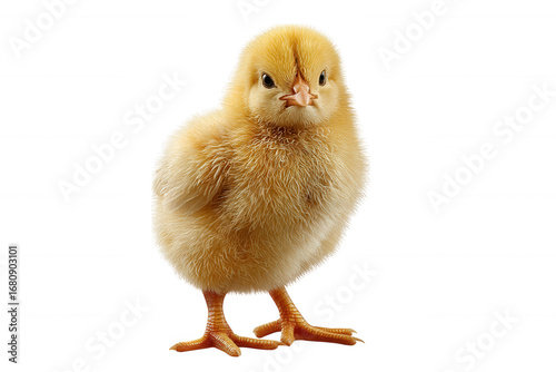 Obraz premium A fluffy yellow chick standing isolated on transparent background