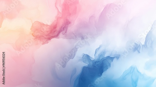 © วรรณภา มะโนศรี, Naklejka premium A fluid, watercolor-inspired abstract background with blended hues and gentle brushstrokes, offering an elegant and artistic appearance.