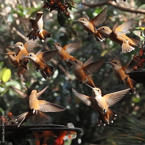 © Duit, Fototapeta premium A flurry of hummingbirds in flight