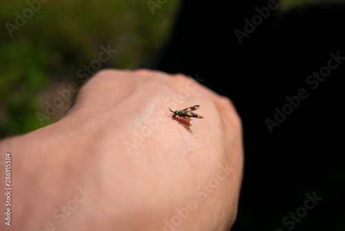 Obraz premium a fly insect bites a human hand
