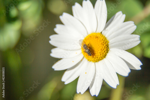 Fototapeta premium a fly on a white and yellow flower