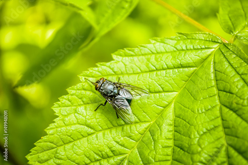 Fototapeta premium A fly on the sheet of blackberry