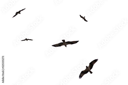 © Nikolay, Obraz premium A flying eagel isolated on white backgound.