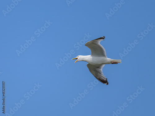 © Stefan, Obraz premium A flying European Herring gull on a sunny day