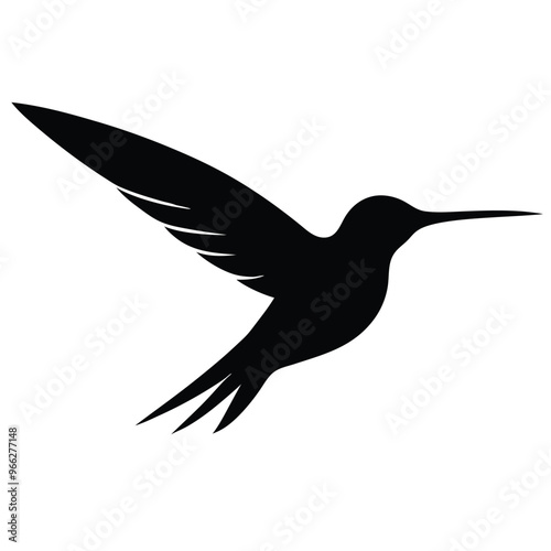 © Swapna graphics, Obraz premium A flying Hummingbird vector illustration, Black color silhouette white background