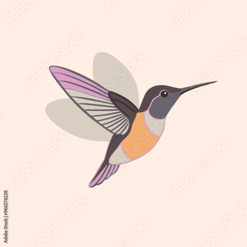 © Swapna graphics, Obraz premium A flying Hummingbird vector illustration clipart, white background