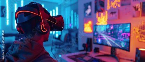 © JK_kyoto, Obraz premium A focused image of a virtual reality gaming setup