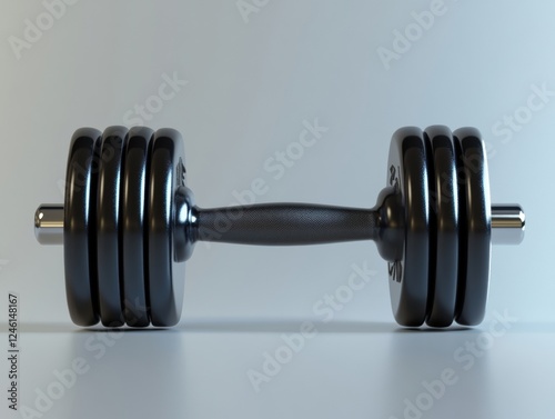 © B8stock, Naklejka premium A focused view of a black dumbbell.