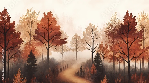 Naklejka premium a fog-covered forest, creating a peaceful and mysterious atmosphere ideal for...