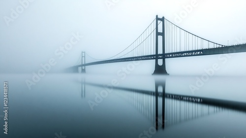 © KarpenArt Studio, Obraz premium A foggy bridge that spans across a body of water.