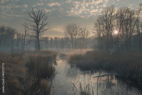 © Alexander, Fototapeta premium A foggy morning in the swamp