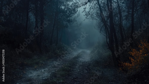 Fototapeta premium A Foggy Path Through a Dark and Mysterious Forest