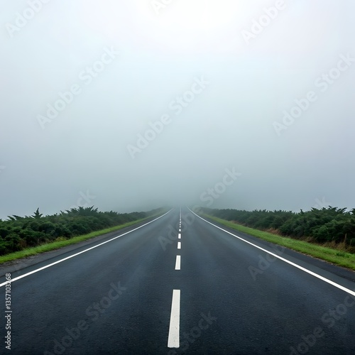 © Rabia, Fototapeta premium A foggy road where the mist creates a mysterious and dreamy effect, AI Generated