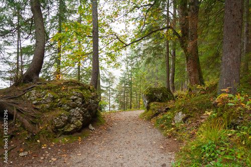 Fototapeta premium A foot path through a forest in Bavarian Alps