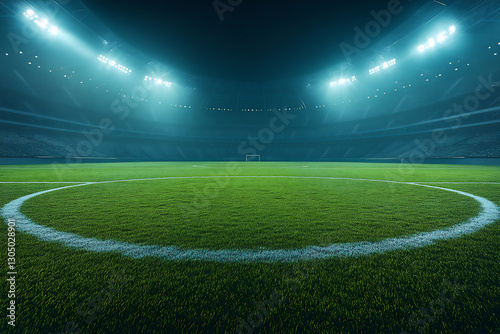 © Sung Hwan Kim, Obraz premium a football field illuminated by bright stadium lights,