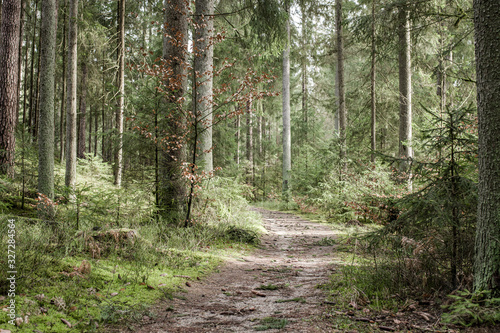 Obraz premium A footpath in a sunny forest