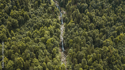 © Hazuko, Obraz premium A forest and a waterfall from a Birdseye view