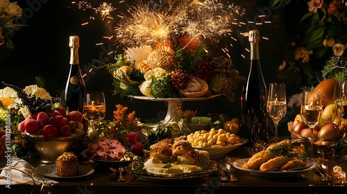Fototapeta premium A forest clearing glowing softly with lanterns and surrounded by starry skies