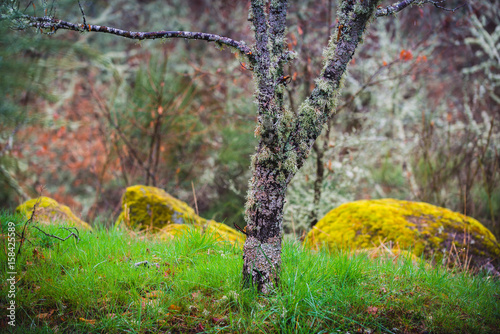 Naklejka premium A forest covered with moss and lichen in the Serra da Estrela mountains. County of Guarda. Portugal