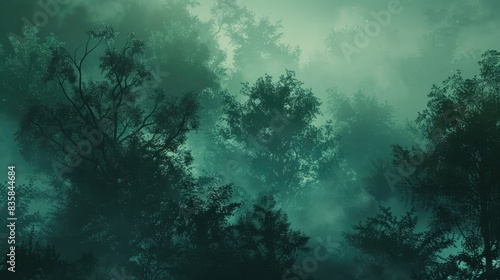 Obraz premium A forest enveloped in enigmatic mist