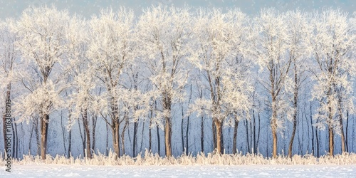 © Chanrothana Pech, Obraz premium A forest of snow-covered trees, their branches heavy with fresh snow.