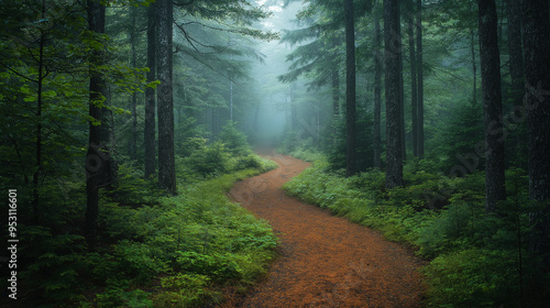 © CtrlN, Fototapeta premium A forest path with a red dirt trail