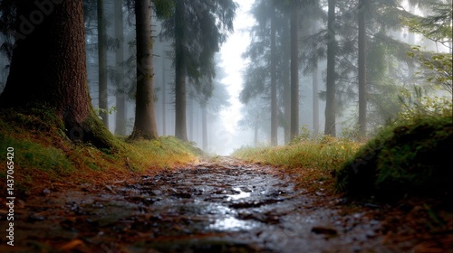 © ZeeZaa, Obraz premium A forest path with a stream running through it