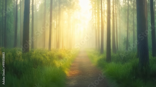 © Natthakan, Obraz premium A forest path with trees in the background