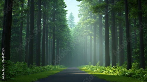 © KayKai, Fototapeta premium A forest path with trees on both sides