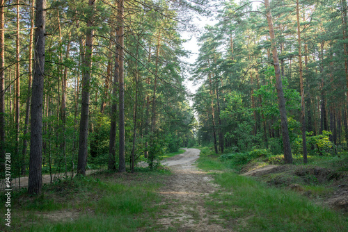 © Sergei, Fototapeta premium A forest path with trees on either side