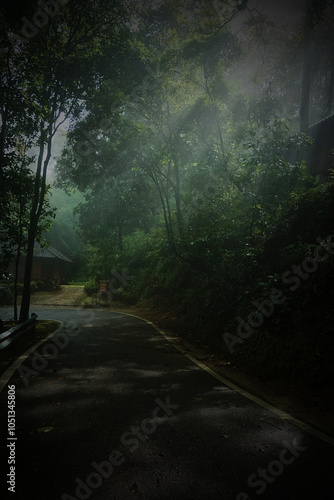 © InfoSoul, Obraz premium A forest road with trees on both sides