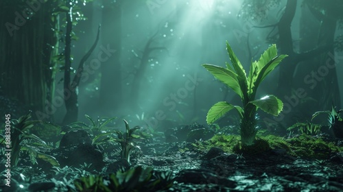© CYBERPINK, Obraz premium A forest scene with a small plant in the foreground