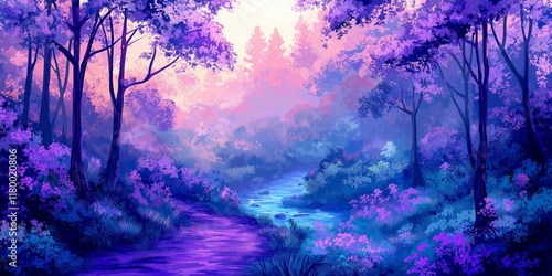Naklejka premium A forest where the treetops are painted in vibrant_008