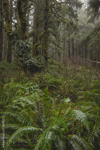© wollertz, Obraz premium A forest with a lot of green plants and moss