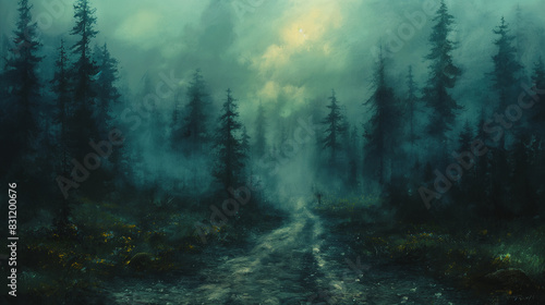© CreativeIMGIdeas, Obraz premium A forest with a path through it