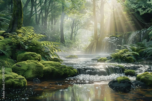 © Rayhanbp, Obraz premium A forest with a stream running through it