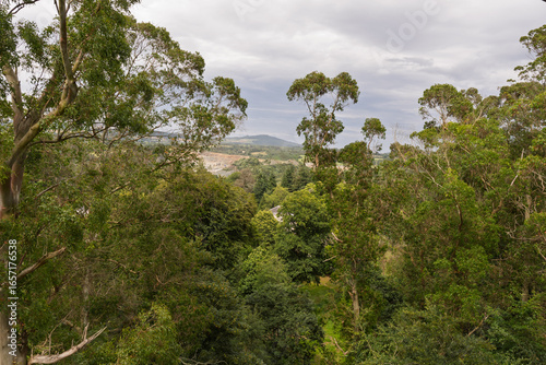 © Ryszard, Obraz premium A forest with a view of a mountain in the distance