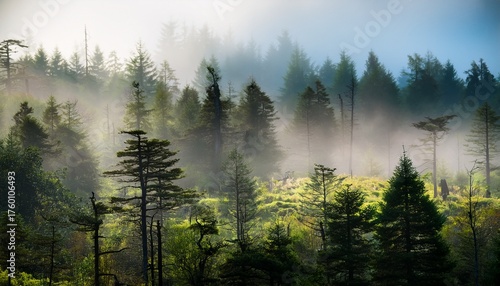 © Donald, Obraz premium A Forest With Fog And Trees