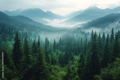 © Atiq Fuad, Obraz premium A forest with many trees and a misty sky
