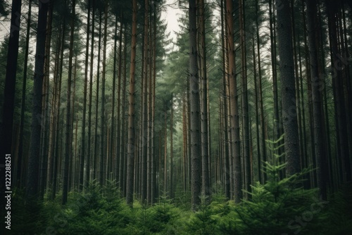 Obraz premium A forest with tall dark green pine trees nature outdoors woodland.